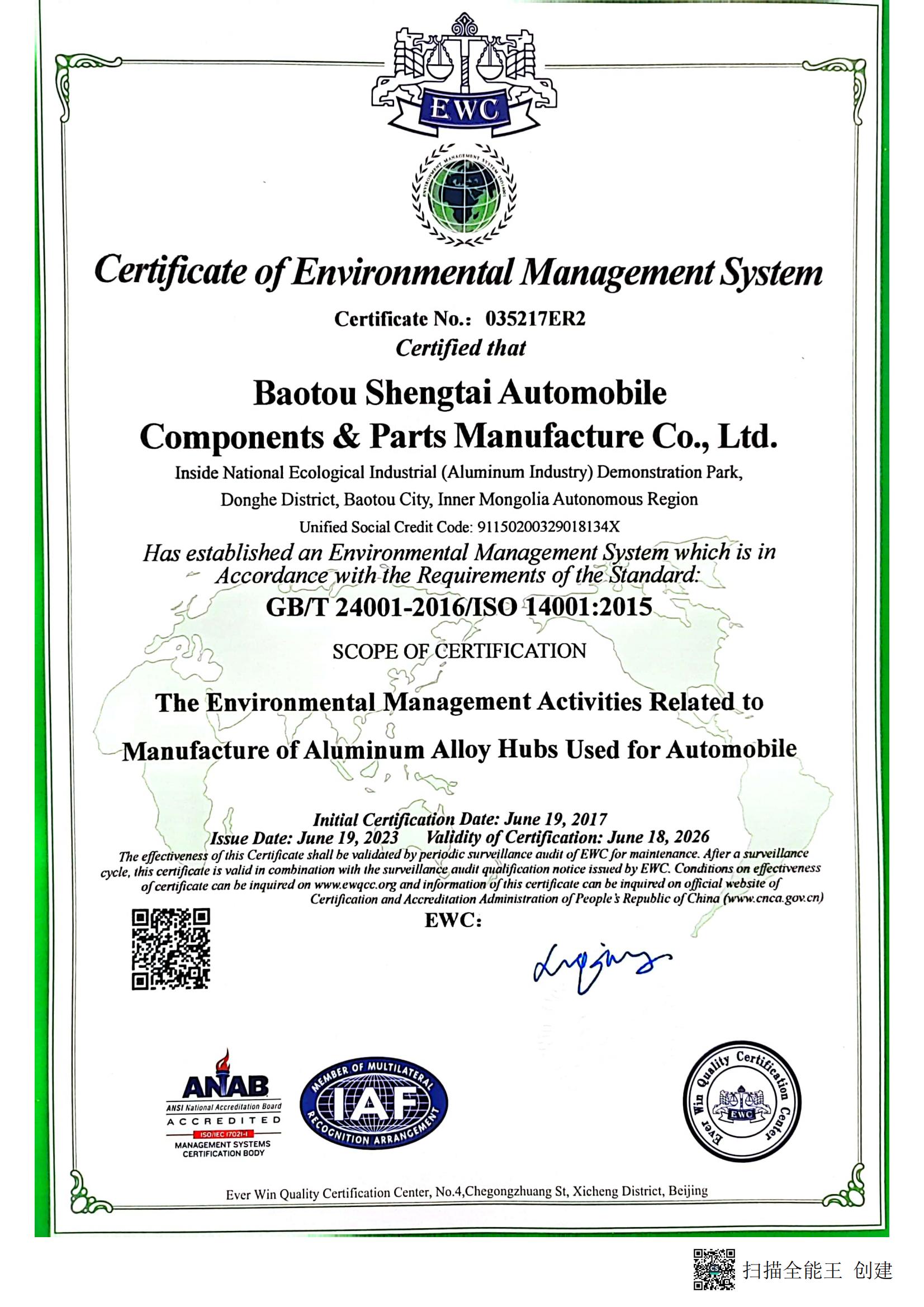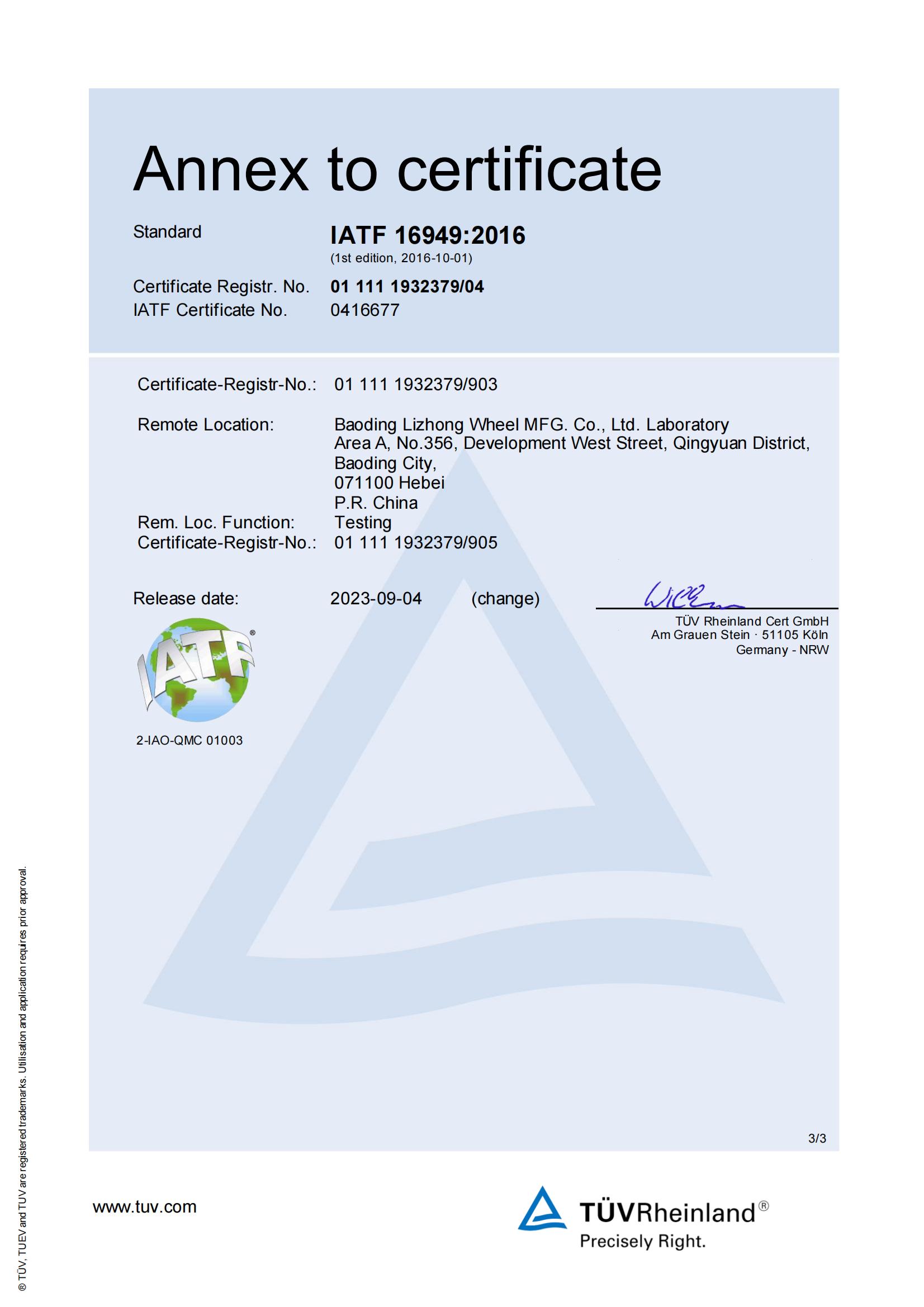 公司通過了以下認(rèn)證:ISO9001質(zhì)量管理體系、IATF16949質(zhì)量管理體系、ISO14001環(huán)境管理體系、 ISO45001職業(yè)健康安全體系、ISO50001能源管理體系、巴西INMETRO、美國DOT、印度ARAI、歐盟ECE、臺灣BSMI認(rèn)證。