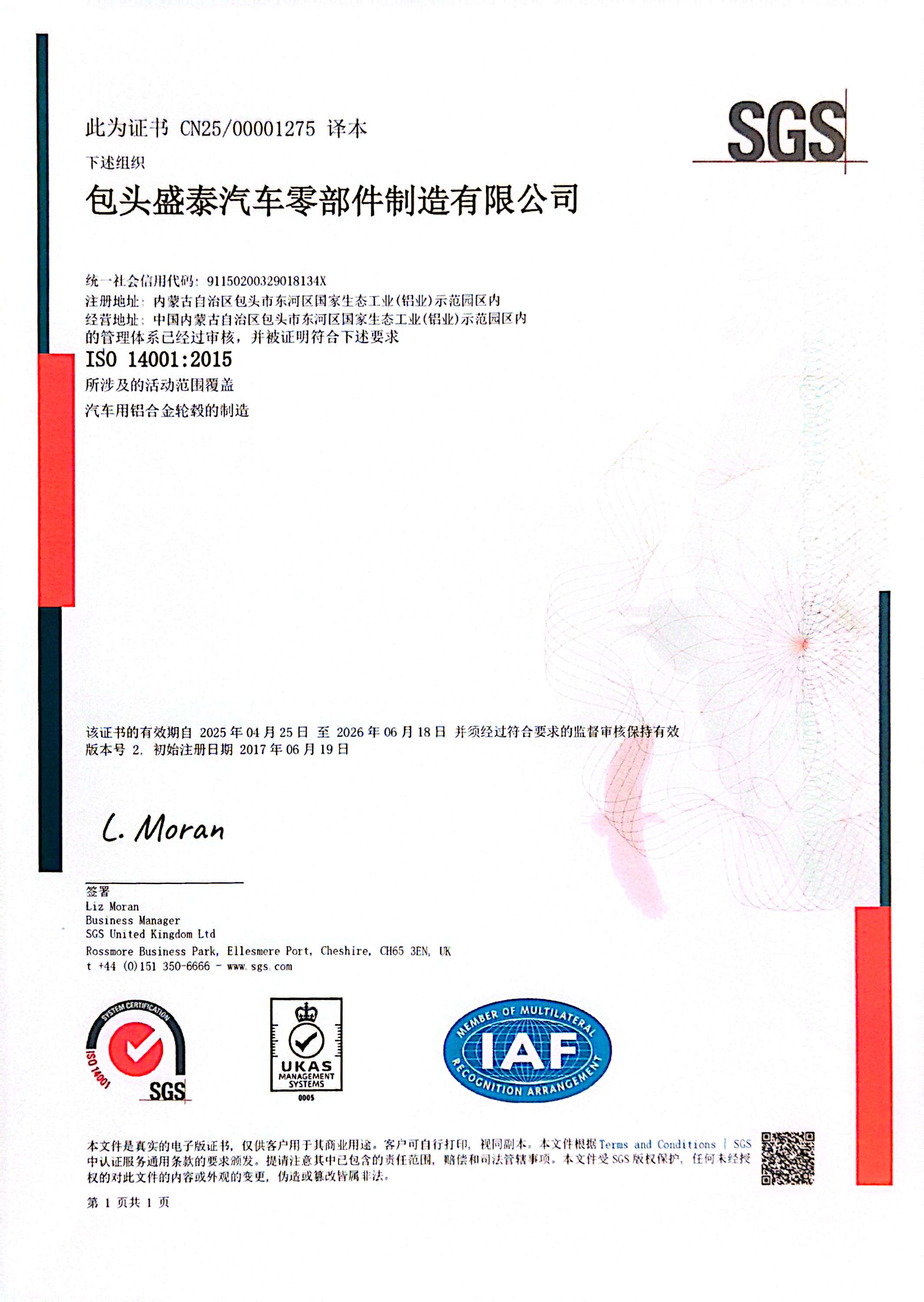 包頭盛泰汽車零部件制造有限公司成功獲評“自治區(qū)級綠色供應(yīng)鏈管理企業(yè)”